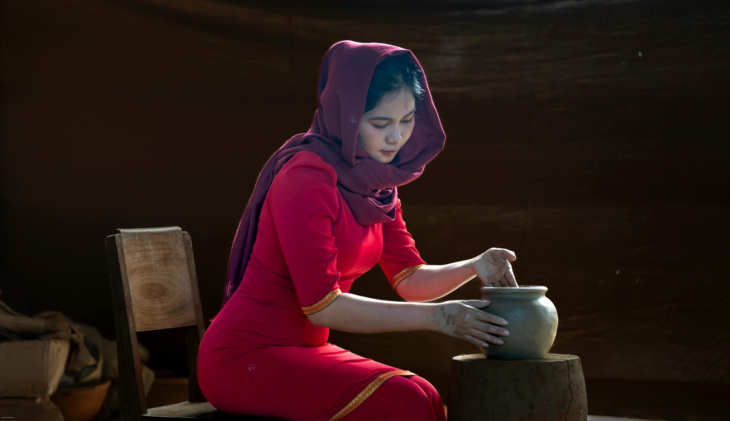 ھن جي گھر ۾ چڪ بيھ رھيو تـ چرکو بيھ رھيو . پوءِ چڪ جي جڳھ تي ھن جا ڪارب ھئا. ھن جي ڪارب تي اھي سڀ ٿانءِ گھمڻ لڳا جيڪي ڪنڀارن جون عورتون ٺاھينديون آھن. ھو مڙس جي جڳھ تـ نٿي وٺي سگھي ڇو جو مڙس مٽي جو وڏو ڪاريگر ھو . پر ھن جي ”ڪارب“ گھمڻ ۽” پلو“ پسڻ تي ھن جي ھڪڙي جندڙي جو چرکو گھمڻ لڳو . ھو جيڪي بـ ٿانءِ ٺاھيندي ھئي. اھي صرف ھڪڙي ڳوٺ ۾ وڪڻندي ھئي. ھو گھورڙيون ٿي ڳوٺ ڳوٺ ڪڏھن ڪونـ وئي. ھو جيڪي ٿانءِ ٺاھيندي ھئي. اھي پچائي مٿي تي کڻندي ھئي.ڇو جو ھن وٽ ٿانءِ کڻڻ لئـ گڏھ ڪونـ ھو. پاڙي جي ڪنھن نـ ڪنھن ٻارڙي کي پاڻ سان گڏ وٺي انھي ڳوٺ جي ڪنھن ھڪڙي گھر ۾ مٿي تان ٿانءِ لاھي وڃي ويھندي رھندي ھئي ۽ جيڪو ملندو ھئس اھو ھڪڙي جندڙي لئـ ڪافي ھو.